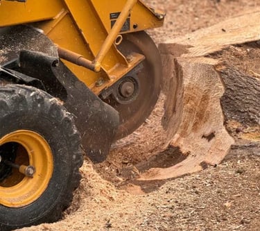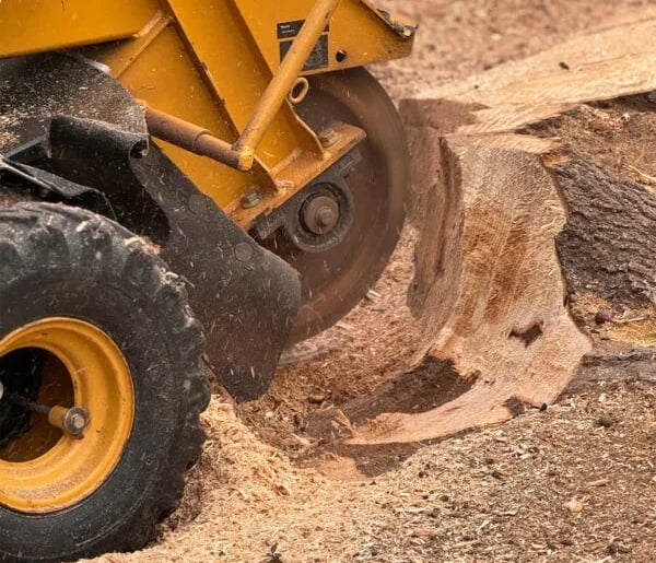 Stump grinding is the process of removing tree stumps using a specialized machine that chips away the wood.
